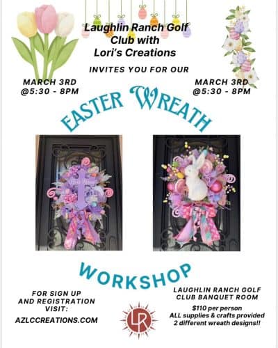 Mark your calendars for Tuesday, March 3rd! The Easter Wreath Workshop, with Lori’s Creations, will be held in our Banquet Room.