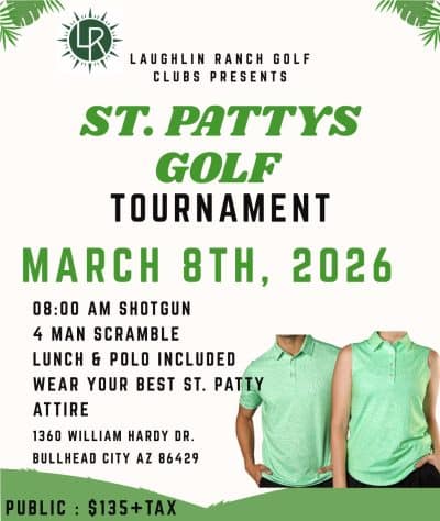 Join us March 8th for our St. Patty’s Golf Tournament featuring an 8AM shotgun start, 4-man scramble, lunch & polo included. Dress in your best St. Patty’s gear and enjoy a festive day on the course!