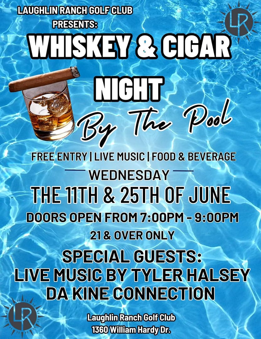 Featured Whiskey & Cigar Night By The PoolLaughlin Ranch Golf Club 1360 William Hardy Dr, Bullhead City, AZ, United StatesLaughlin Ranch Golf Club invites you to an unforgettable Whiskey & Cigar Night Pool Party on June 11 & 25, from 7:00-9:00PM to indulge in premium whiskey, fine cigars, and live music. More updates soon!