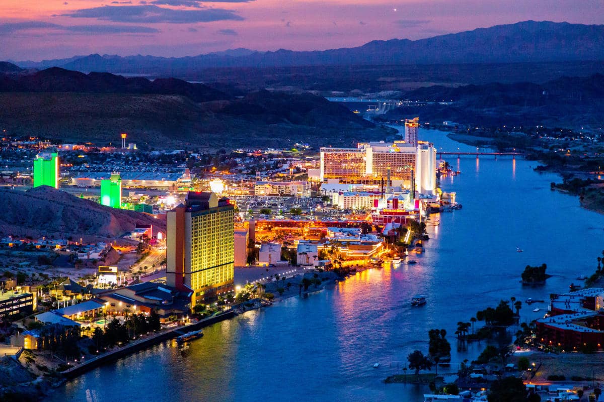 In addition to gaming, several amenities include weekly entertainment at Don’s Celebrity Theatre; Losers’ Lounge Nightclub; Karaoke Dance Club; U.S.S. Riverside boat tour along the Colorado River up to Davis Dam; two classic car museums; Riverside Lanes 34-Lane Bowling Center; Riverside Cinemas Six-Plex Movie Theater with digital surround sound; Jean Jeffrey Salon & Day Spa; Laser Tag Arena; two arcades; an adult pool with a 360 degree pool bar & fire pits; family pool; two large gift shops; and a 740-space, full hook-up RV Park with complimentary shuttle to and from resort.