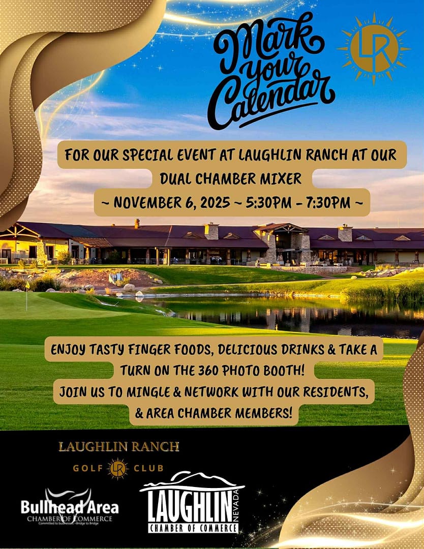 Laughlin Ranch Golf Club 1360 William Hardy Dr, Bullhead City, AZ, United StatesMark your calendars for an evening of networking, great company, and scenic views at the Dual Chamber Mixer, hosted at the beautiful Laughlin Ranch Golf Club! Date: Thursday, November 6, 2025 Time: 5:30 PM – 7:30 PM Location: Laughlin Ranch Golf Club Join members of the Laughlin Chamber of Commerce and the Bullhead Area Chamber of Commerce […]