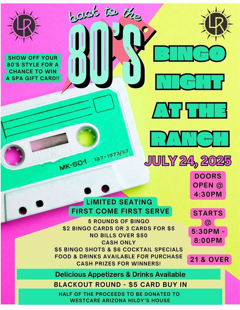 FeaturedLaughlin Ranch Golf Club 1360 William Hardy Dr, Bullhead City, AZ, United StatesGet ready to rewind the fun at Laughlin Ranch’s Back to the 80's Bingo Night on July 24, 2025! Doors open at 4:30 PM, and games run from 5:30 PM to 8:00 PM. Enjoy 5 rounds of bingo, $5 blackout cards, bingo shots, and cocktail specials. Show off your best 80s style for a chance […]