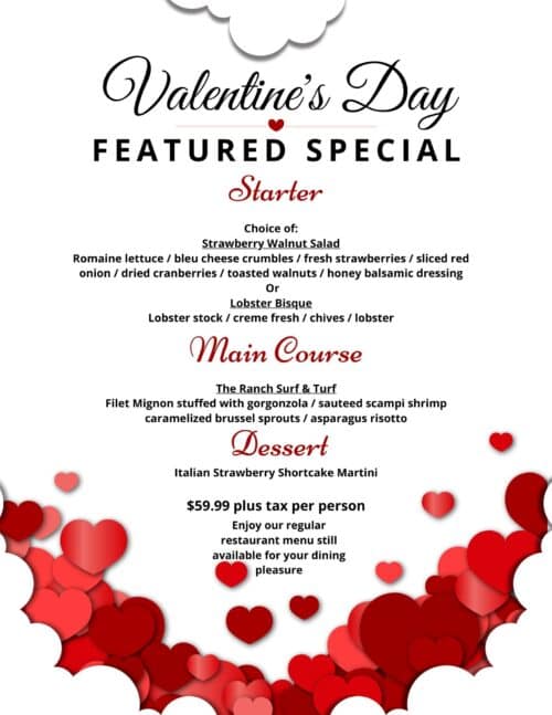 FeaturedLaughlin Ranch Golf Club 1360 William Hardy Dr, Bullhead City, AZ, United StatesSecure your spot for a romantic rendezvous! Taking reservations now for an unforgettable Valentine's Day. Book your table of love! Enjoy our regular restaurant menu-still available for your dining pleasure plus our featured specials. Live Entertainment by the talented musician Ken Cooper 🎷 Walk-ins welcome, based on availability. Regular business hours that day- Special Starting […]